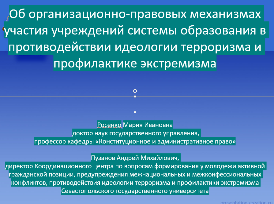- Пузанов Андрей Михайлович, директор Координационного центра по вопросам формирования у молодежи активной гражданской позиции, предупреждения межнациональных и межконфессиональных конфликтов, противодействия идеологии терроризма и профилактики экстремизма ФГБУО ВО «Севастопольский государственный университет».
