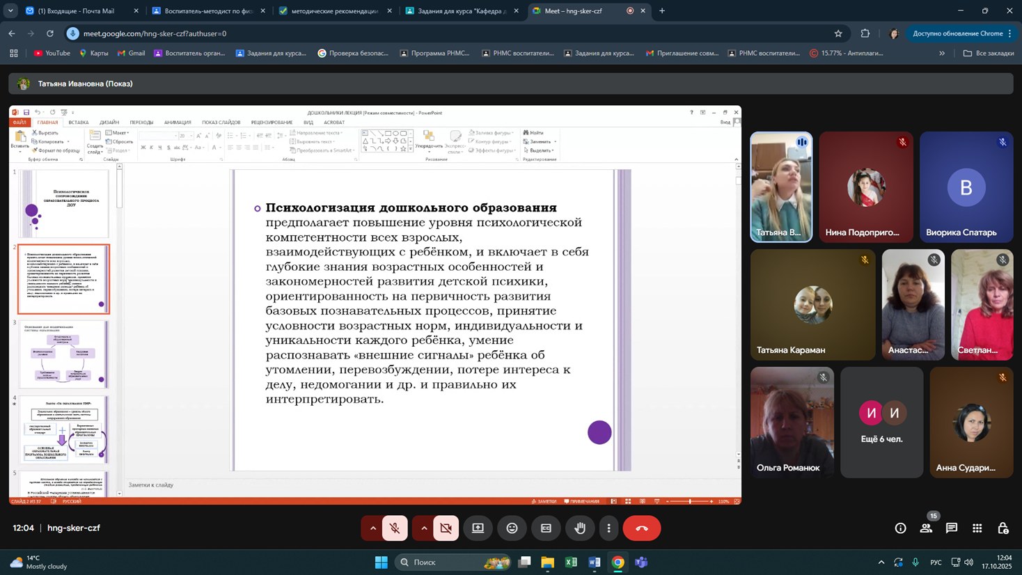 С 13 октября по 24 октября 2025 года на кафедре дошкольного и начального образования ГОУ ДПО «Институт развития образования и повышения квалификации» реализована дополнительная профессиональная образовательная программа повышения квалификации «Воспитатель-методист по физической культуре организаций дошкольного образования» в объёме 72-х часов. В реализации дополнительной профессиональной образовательной программы приняли участие 16 воспитателей-методистов по физической культуре организаций дошкольного образования городов (районов) Приднестровской Молдавской Республики.