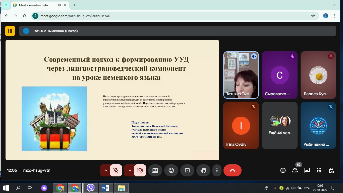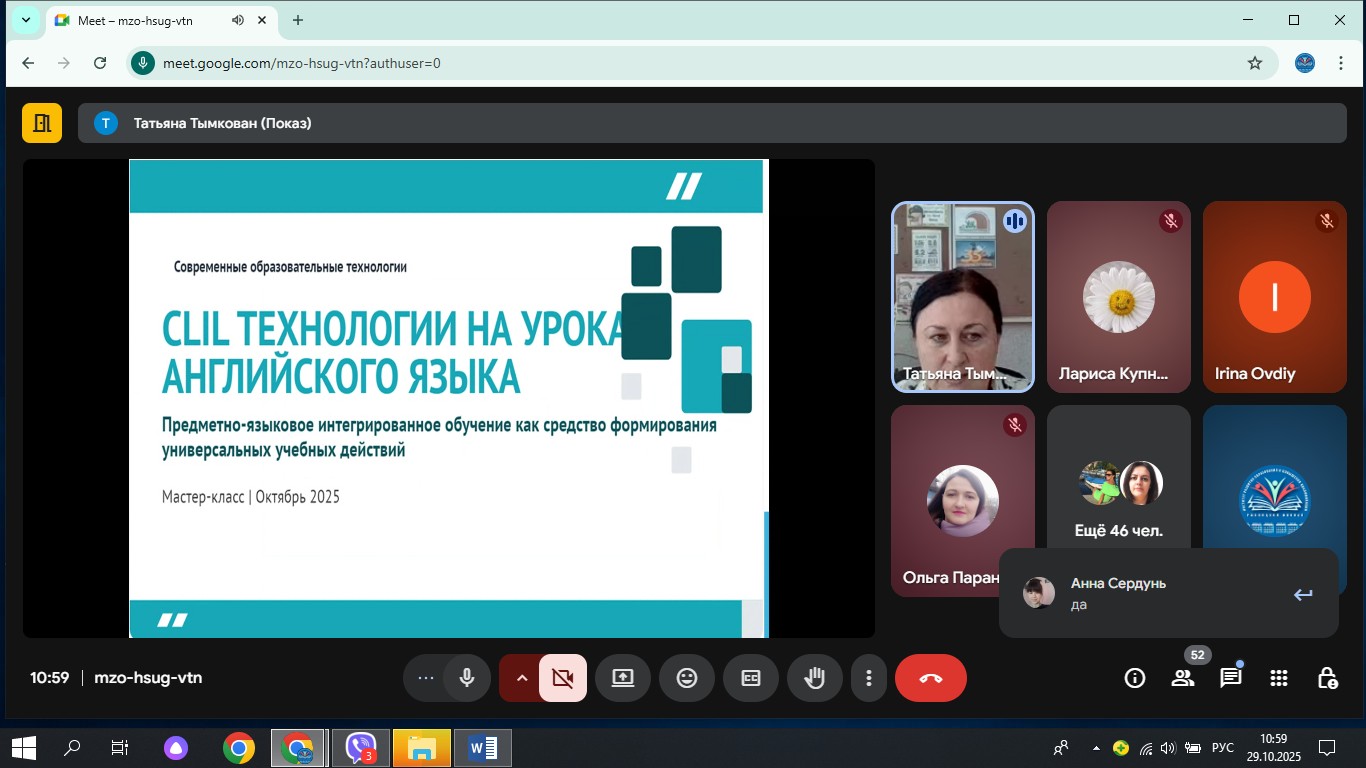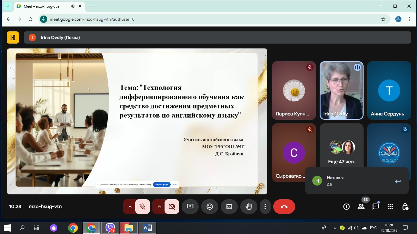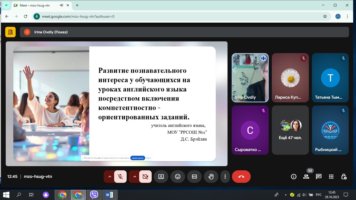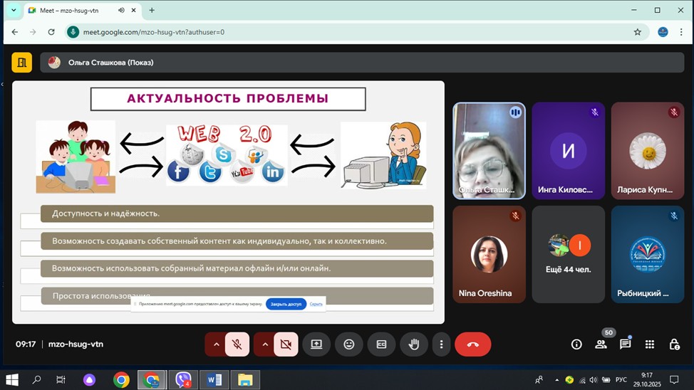 29 октября 2025 г. Рыбницким филиалом ГОУ ДПО «ИРОиПК» совместно с муниципальным образовательным учреждением «Рыбницкая русская средняя общеобразовательная школа №11» в формате on-line был организован и проведен учебно-методический семинар на тему «Современный урок иностранного языка с позиции формирования универсальных учебных действий» для учителей иностранного языка организаций образования. Всего в семинаре приняло участие 57 педагогов организаций образования ПМР. Интернет-сопровождение учебно-методического семинара осуществлено посредством платформы Google Classroom.
