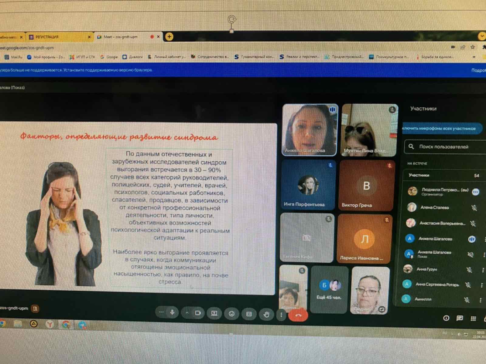 - Интерактивный воркшоп «Синдром профессионального выгорания: особенности, риски, пути преодоления»